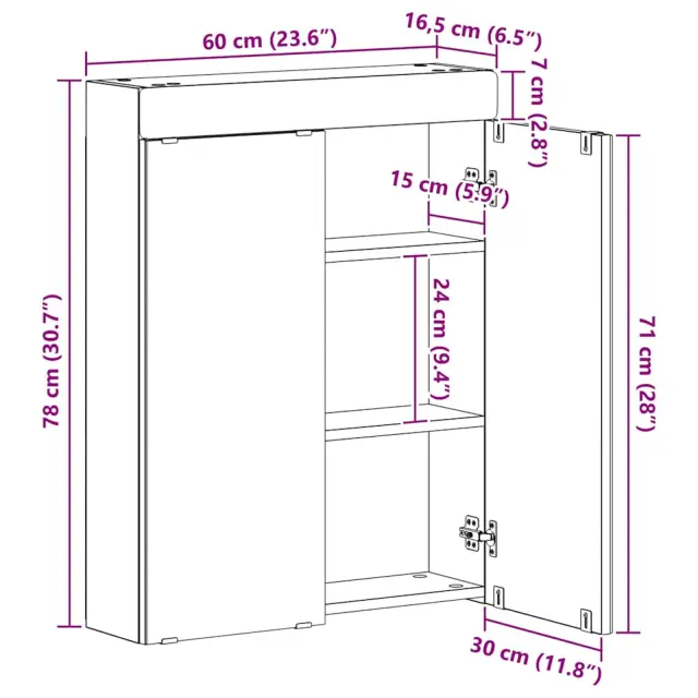 • Splošne dimenzije: 60 x 16,5 x 78 cm (D x Š x V)
