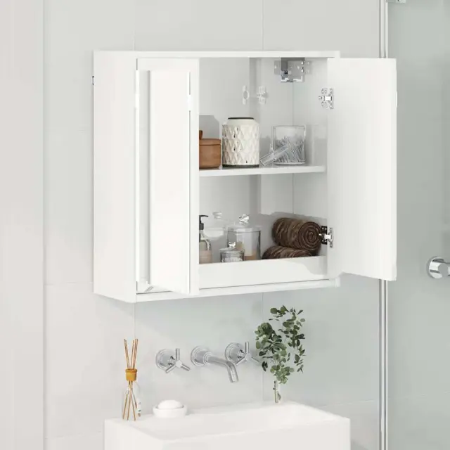 vidaXL Kopalniška ogledalna omara Visok sijaj bela 60 x 20 x 60 cm