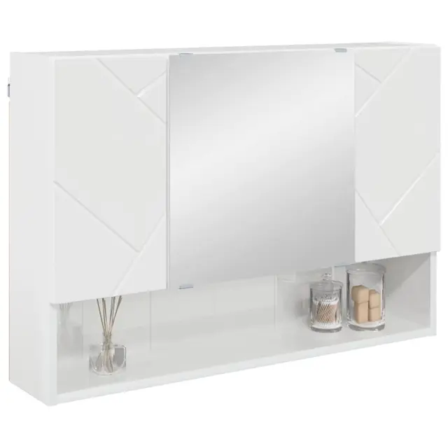 vidaXL Kopalniška ogledalna omara z vrati Bela z visokim sijajem