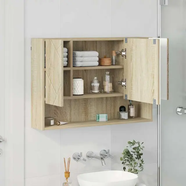 vidaXL Kopalniška ogledalna omara z vrati sonoma hrast 80 x 17 x 55 cm