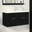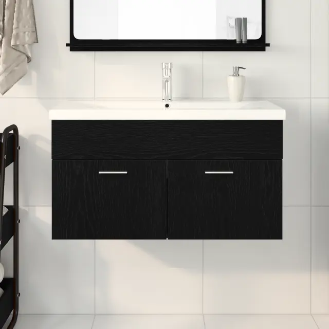 vidaXL Kopalniška omara pod umivalnikom z vgrajeno posodo črni hrast inženirski les