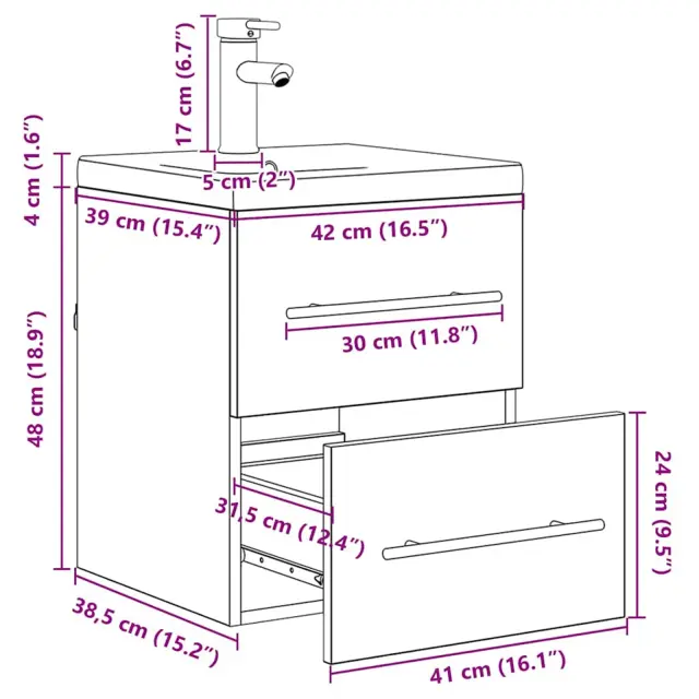 vidaXL Kopalniška omara za umivalnik Črna Orehovina 41 x 38,5 x 48 cm