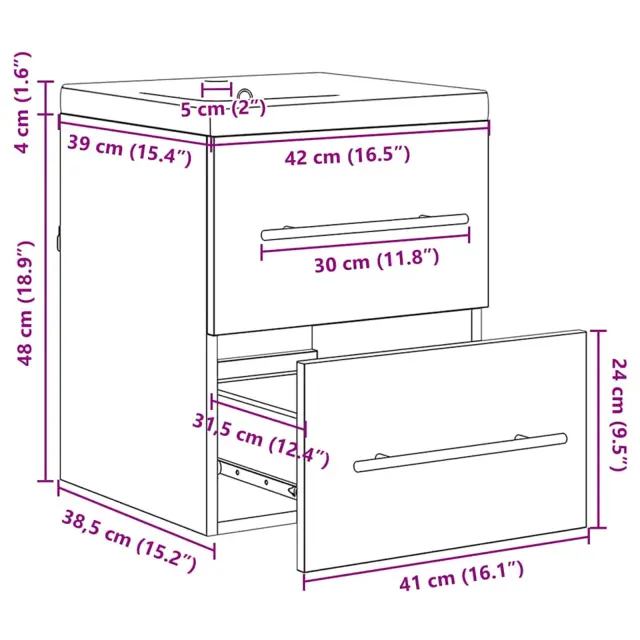 vidaXL Kopalniška omara za umivalnik s predalom Rjava 42 x 39 x 52 cm