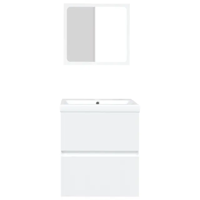 vidaXL Kopalniška omarica z umivalnikom in ogledalom bela