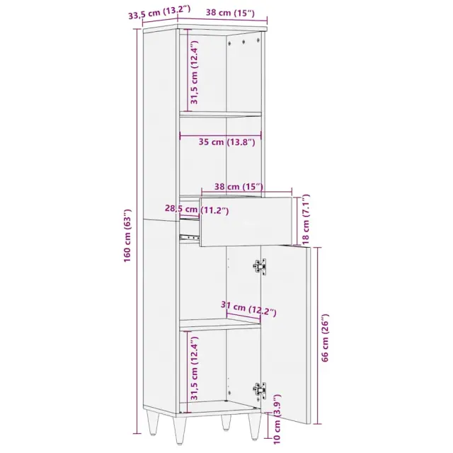 vidaXL Kopalniška omarica 38x33,5x160 cm Masivni les Mango