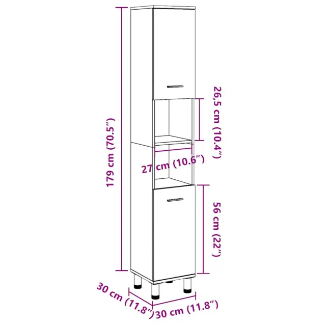 vidaXL Kopalniška omarica Old Wood 30x30x179 cm Inženirski les