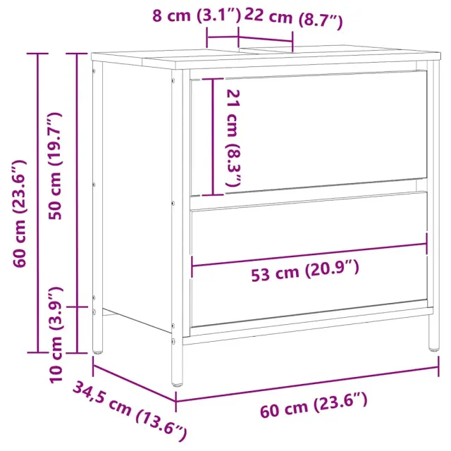 vidaXL Kopalniška omarica s predali sonoma hrast 60x34,5x60 cm