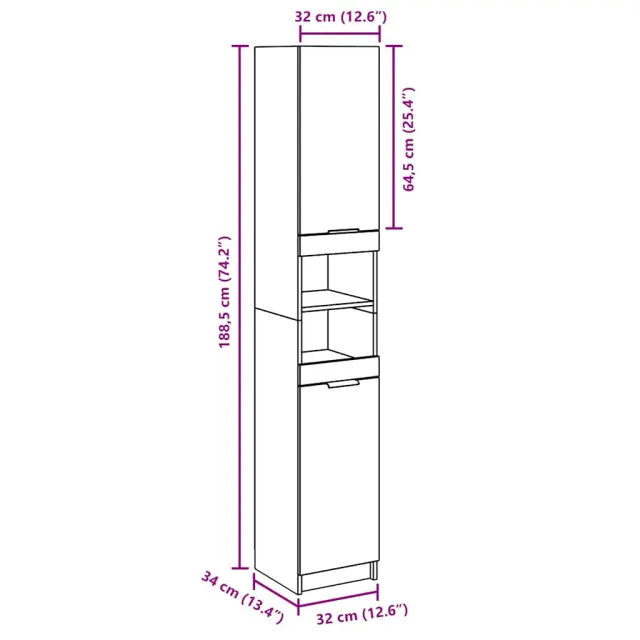 vidaXL Kopalniška omarica Concrete Grey 32x34x188,5 cm Inženirski les