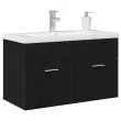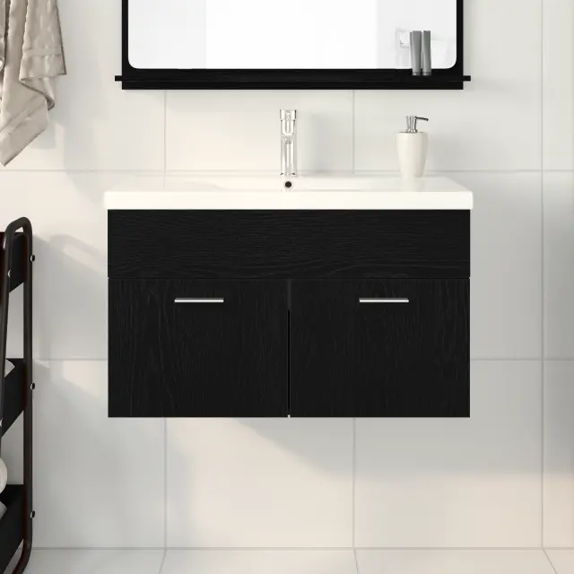 vidaXL kopalniška omarica s vgrajenim koritom črni hrast inženirski les