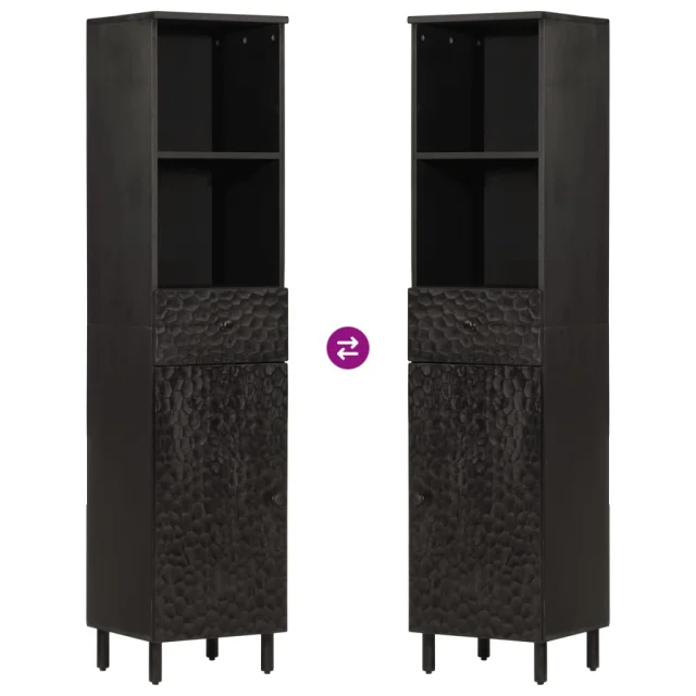 vidaXL Kopalniška omarica črna 38x33x160 cm trden mangov les