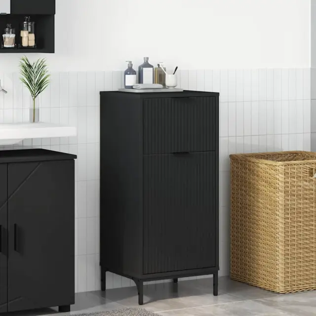 vidaXL Kopalniška omarica Črna 39.5 x 36 x 88 cm Konstruiran les
