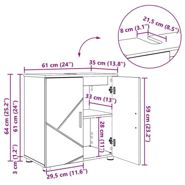 • Splošne dimenzije: 61 x 35 x 64 cm (D x Š x V)