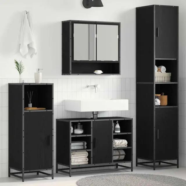 vidaXL Kopalniška omarica s polico Črni hrast 35 x 37.5 x 188.5 cm