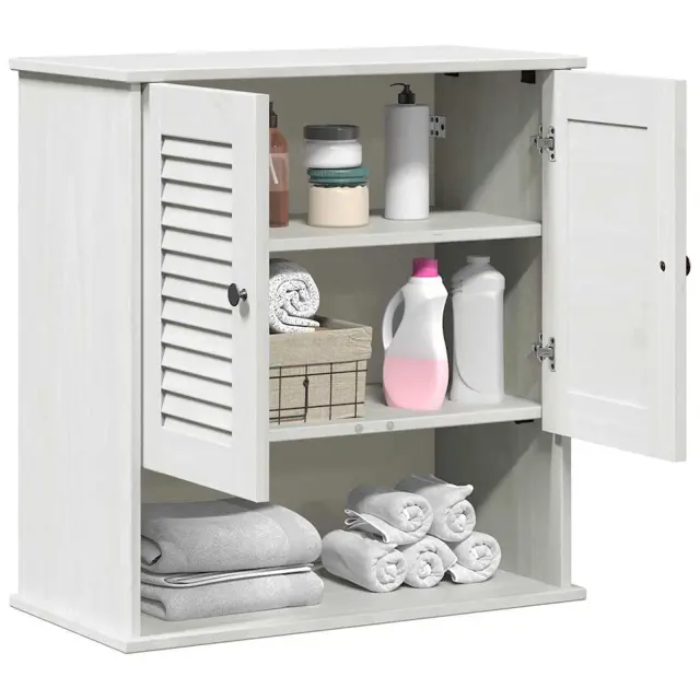 Ta pravokotna stenska omara za shranjevanje je zasnovana tako, da je funkcionalna in stilna. Nudi obilico prostora za vaše kopalniške pripomočke, medtem ko ohranja eleganten sodoben izgled. Izdelana iz trdnega borovega lesa, predstavlja trdno in preprosto rešitev za shranjevanje, ki se brez težav ujema s sodobnim notranjim oblikovanjem. Oblikovanje vključuje čiste črte in poenostavljen videz, kar jo dela odlična izbira za tiste, ki iščejo tako obliko kot funkcionalnost v shranjevanju kopalnice.