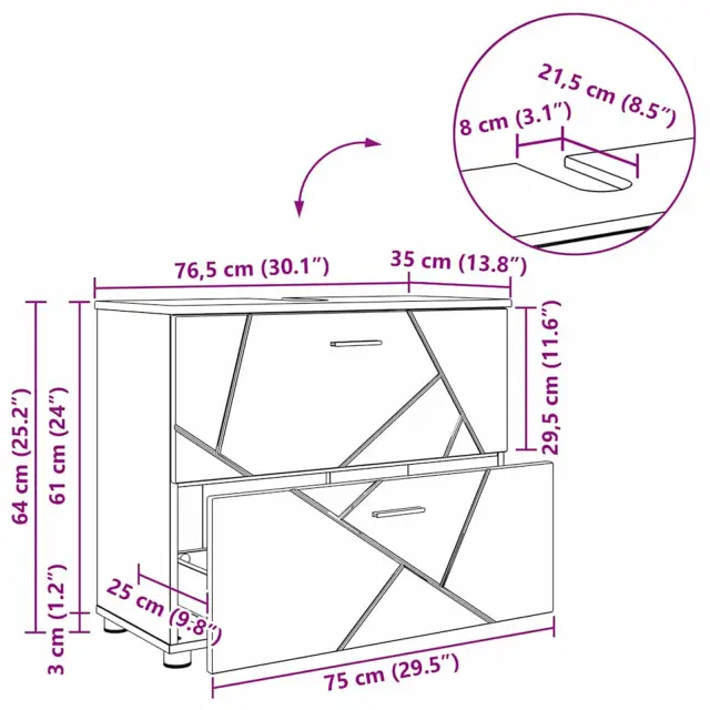 vidaXL Kopalniška omarica s predalom Betonsko siva 76.5 x 35 x 64 cm