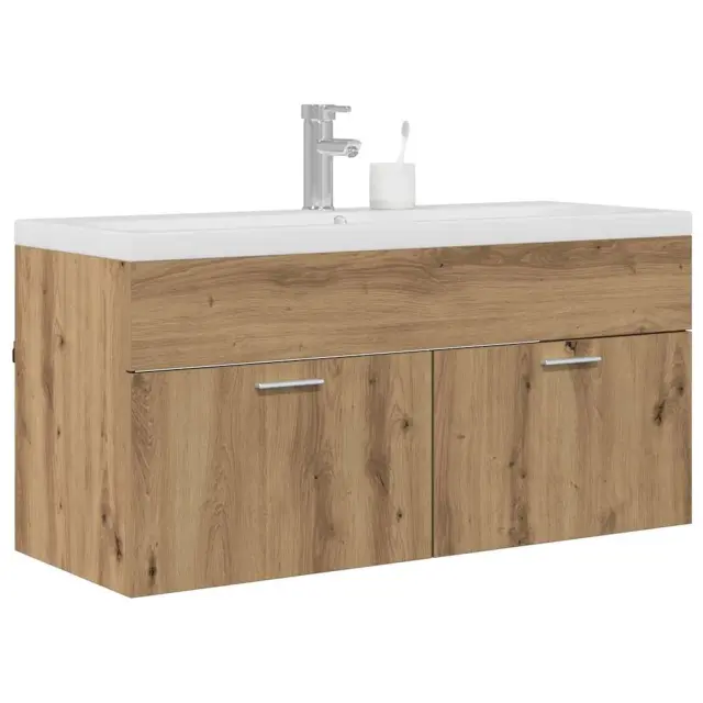 vidaXL Kopalniška omarica s predalom Umetni hrast 100 x 38,5 x 46 cm