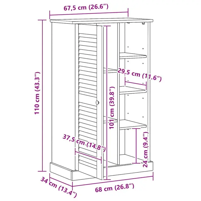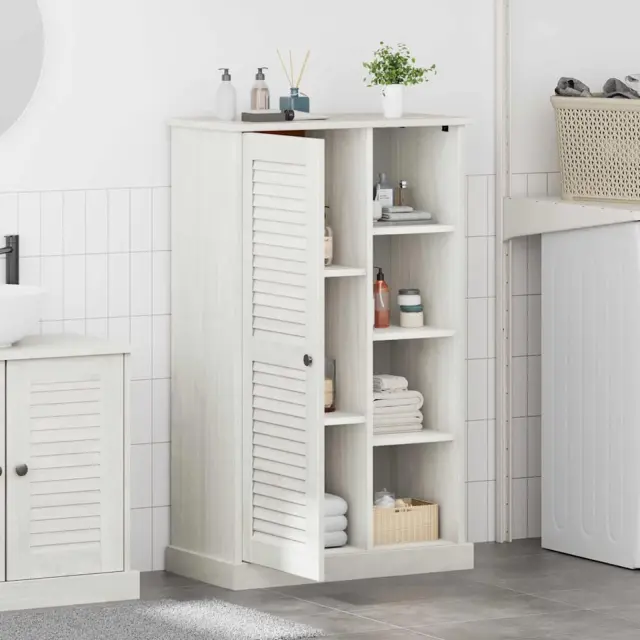 Ta kabinet za shranjevanje v kopalnici povezuje funkcionalnost in stil. Narejen je iz trdnega borovega lesa s prijetnim naravnim izgledom, ki se dobro poda tako tradicionalnim kot modernim kopalnicam. S svojimi elegantnimi linijami ta kabinet izboljša videz tvoje kopalnice in nudi dovolj prostora za vse potrebščine.