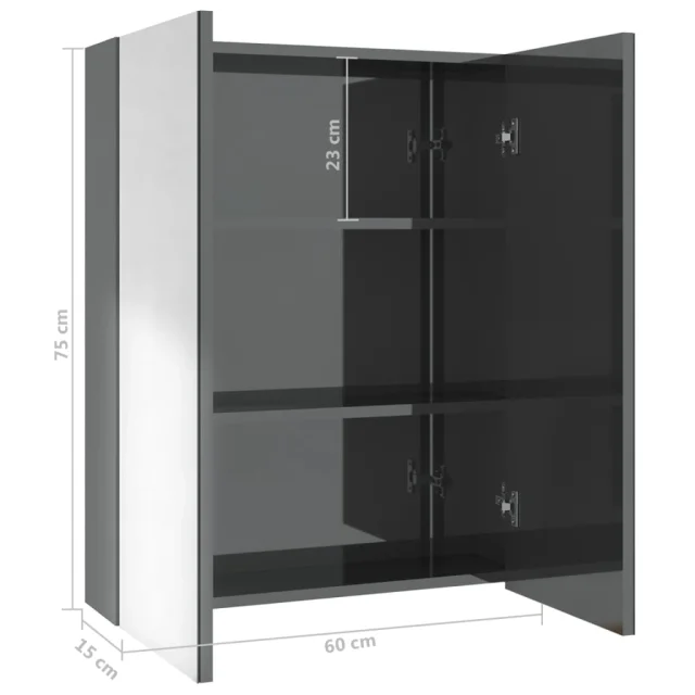 vidaXL Kopalniška omarica z ogledalom 60x15x75 cm MDF sijoče siva