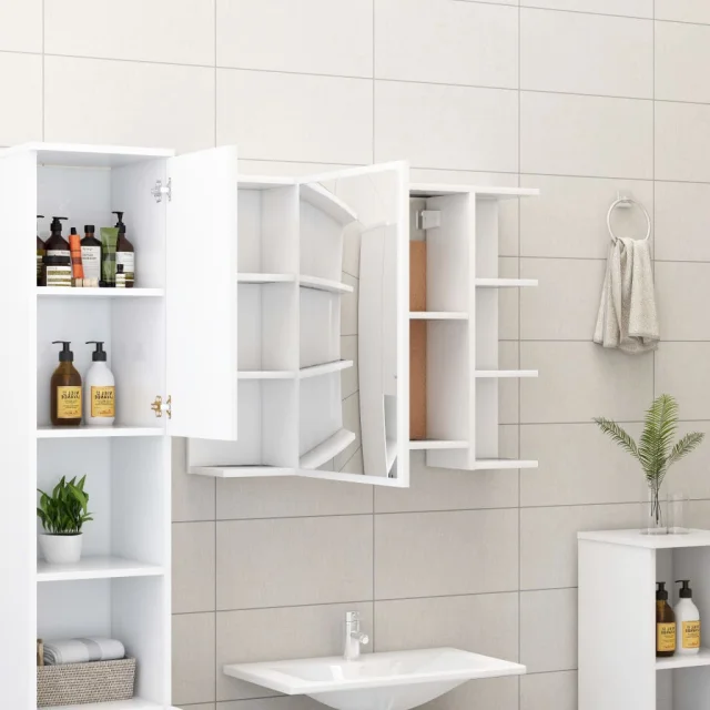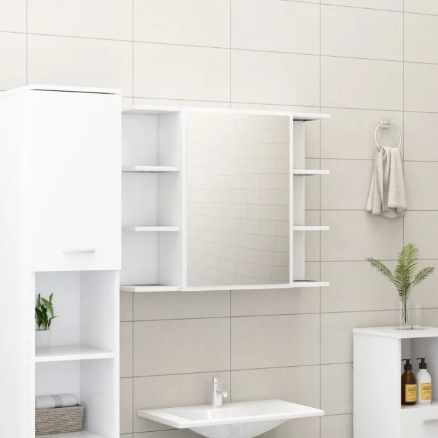 vidaXL Kopalniška omarica z ogledalom bela 80x20,5x64cm inženirski les