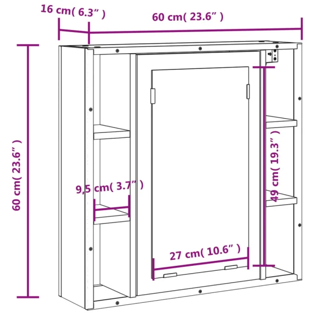 vidaXL Kopalniška omarica z ogledalom dimljeni hrast 60x16x60 cm