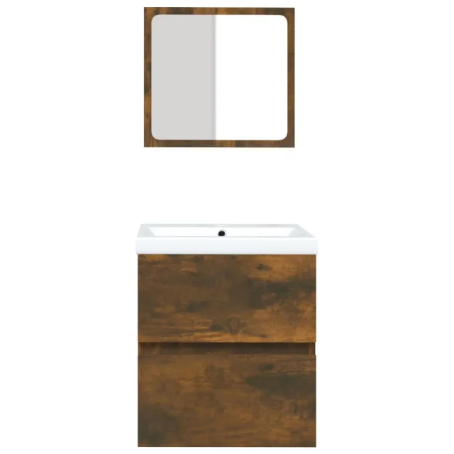 vidaXL Kopalniška omarica z umivalnikom in ogledalom dimljen hrast