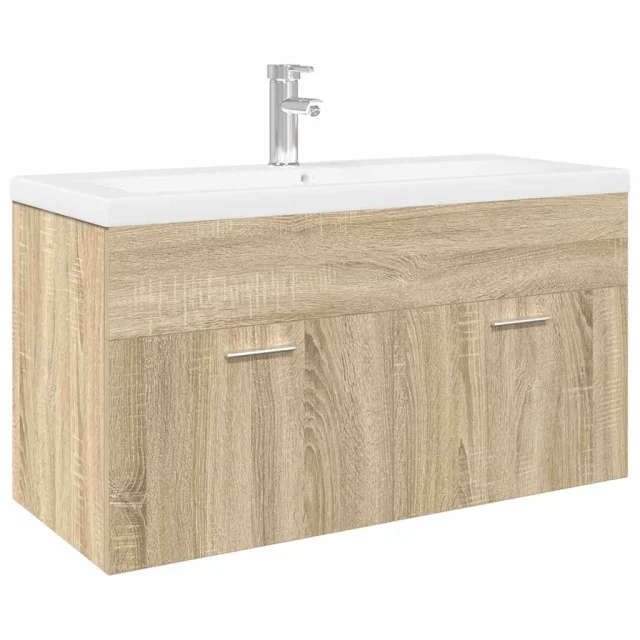 vidaXL Kopalniška omarica z umivalnikom sonoma hrast
