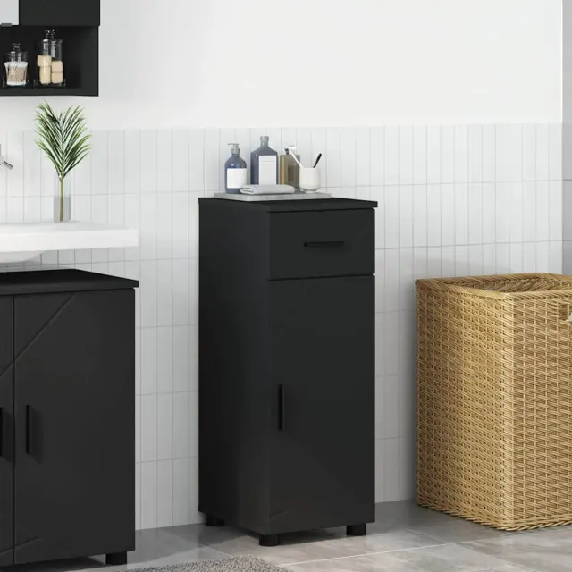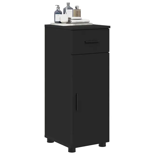 vidaXL Kopalniška omarica z vrati Črna 30 x 35 x 80 cm Konstruiran les