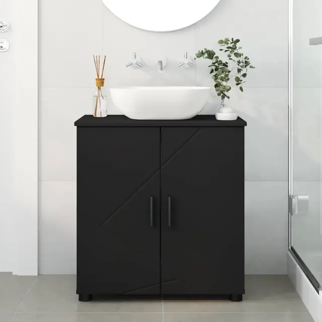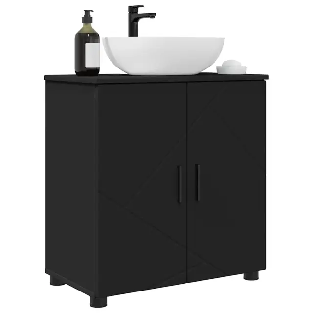 vidaXL Kopalniška omarica z vrati Črna 61 x 35 x 64 cm Konstruiran les