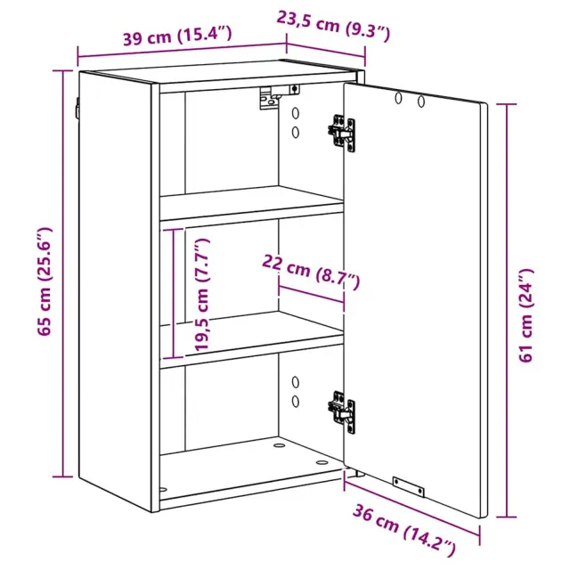 vidaXL Kopalniška omarica z vrati Dimljeni hrast 39 x 23.5 x 65 cm