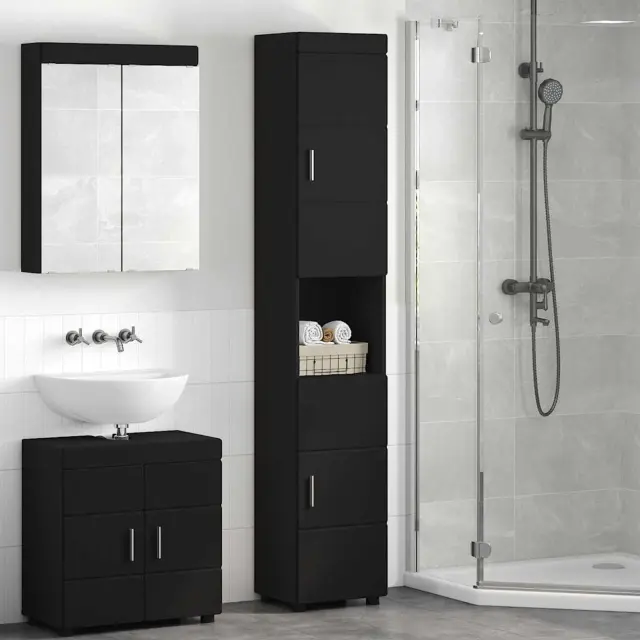 vidaXL Kopalniška omarica z vrati TULUM Črna 37 x 31.5 x 203 cm