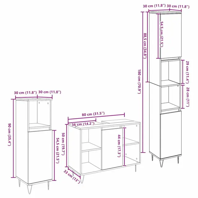 vidaXL Kopalniška pohištvena garnitura 3 pcs Star les 30 x 30 x 180 cm