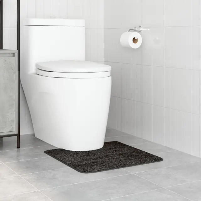 Ta kopalna preproga povezuje funkcionalnost in stil, kar jo dela odličen dodatek v vsaki kopalnici. Njena elegantna temno siva barva in oblikovanje popestrita prostor, medtem ko ostaja varna in udobna.