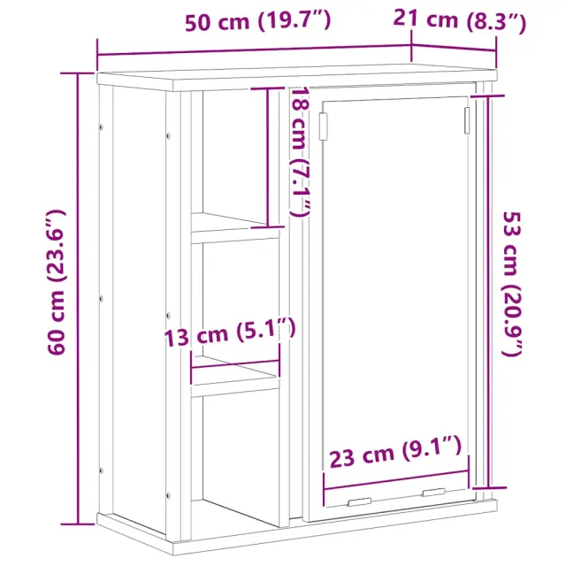 vidaXL Kopalniška stenska omarica z ogledalom črni hrast 50x21x60 cm