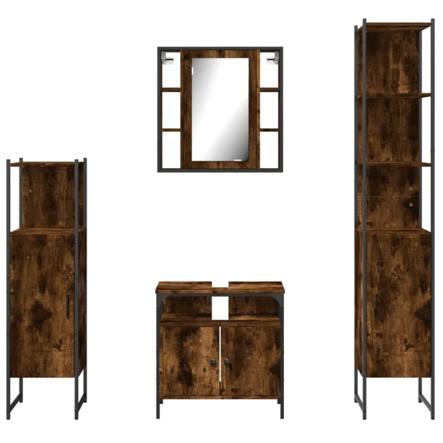 vidaXL Kopalniške omarice 4 kosi dimljen hrast inženirski les