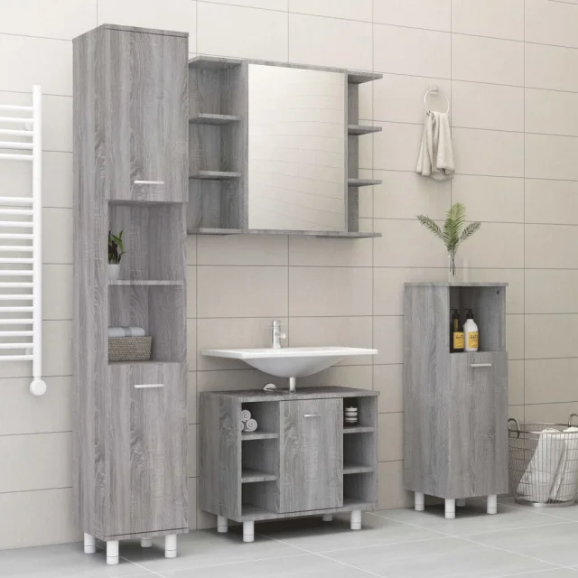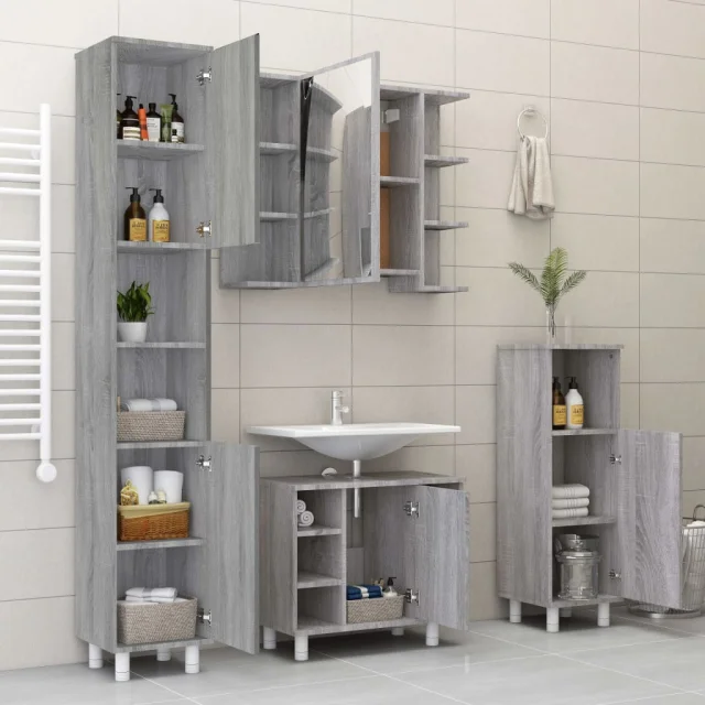 vidaXL Kopalniške omarice 4 kosi siva sonoma inženirski les