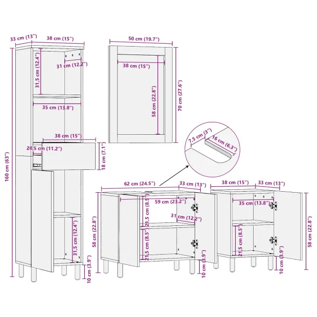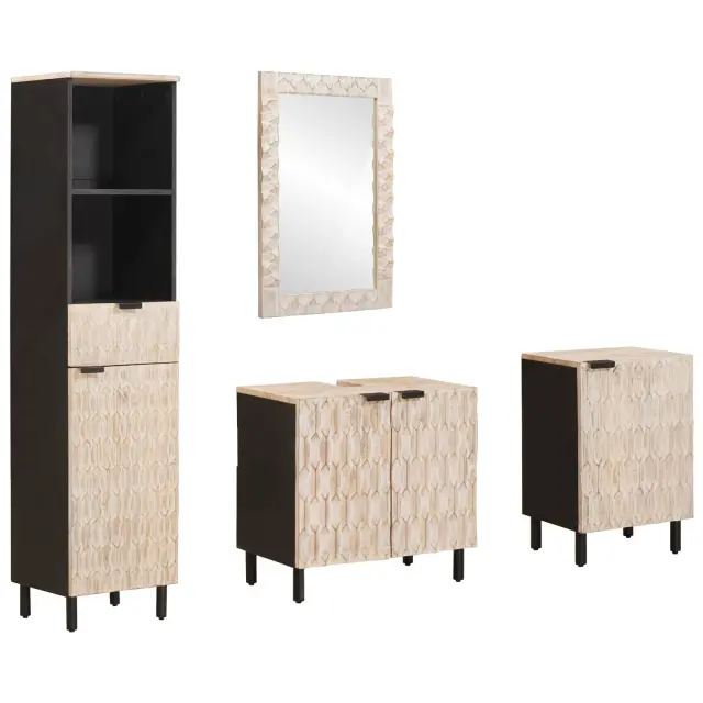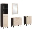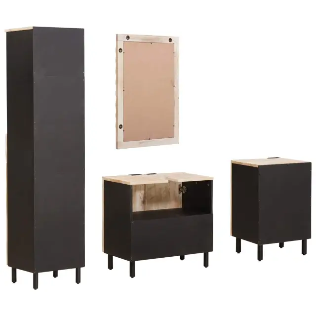 Moderna kopalniška garnitura ponuja enostaven stil, ki se brez težav vključuje v sodobne kopalniške zasnove. Zasnovana posebej za notranjo uporabo, je idealna za lastnike domov, ki iščejo preprostost s funkcionalnostjo. Njen minimalističen dizajn v kombinaciji s toplim lesom ustvarja prijetno vzdušje, ki se lepo prilega vsakemu domu.