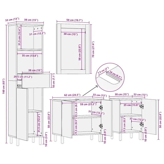 Moderna kopalniška garnitura ponuja enostaven stil, ki se brez težav vključuje v sodobne kopalniške zasnove. Zasnovana posebej za notranjo uporabo, je idealna za lastnike domov, ki iščejo preprostost s funkcionalnostjo. Njen minimalističen dizajn v kombinaciji s toplim lesom ustvarja prijetno vzdušje, ki se lepo prilega vsakemu domu.