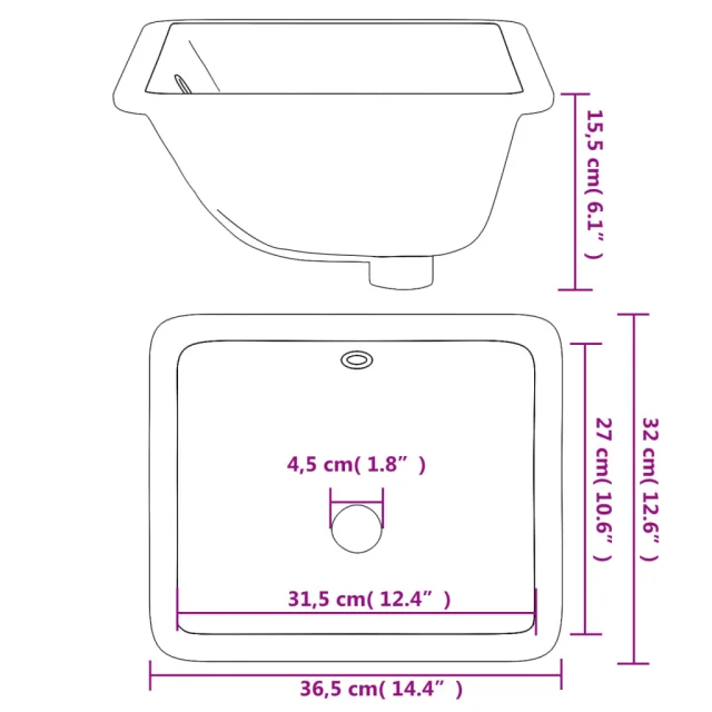 vidaXL Kopalniški umivalnik bel 36,5x32x15,5 cm pravokoten keramičen