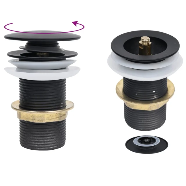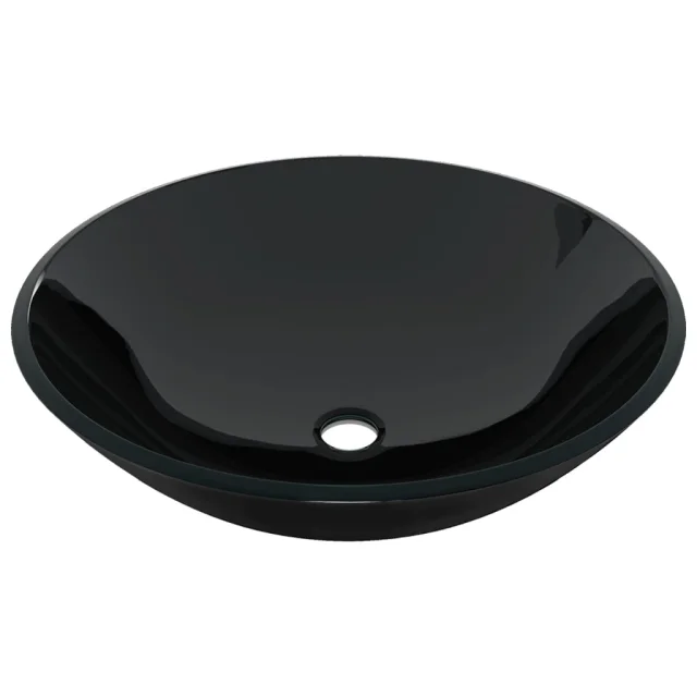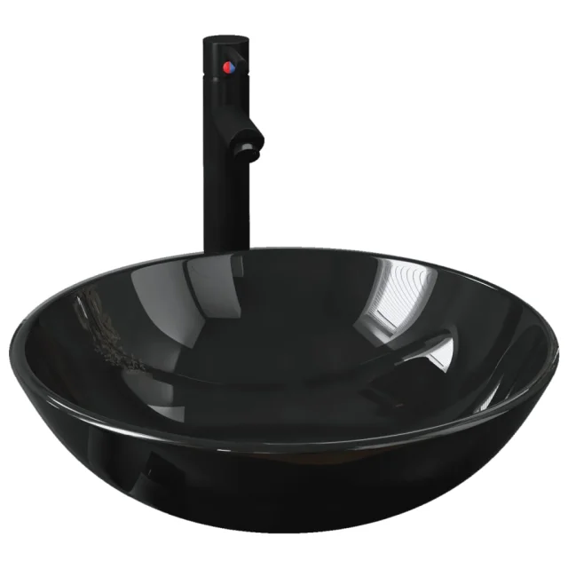 vidaXL Kopalniški umivalnik s pipo in potisnim odtokom črno steklo