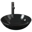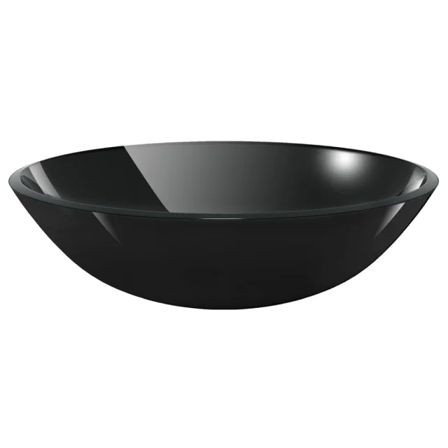 vidaXL Kopalniški umivalnik s pipo in potisnim odtokom črno steklo