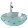 vidaXL Kopalniški umivalnik s pipo in potisnim odtokom mlečno steklo