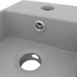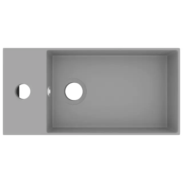 Kakovostna keramika z mat površino je preprosta za čiščenje. Umivalnik ima luknjo za odtekanje, skozi katero odteka voda, ko je poln. Ima tudi odprtino za namestitev pipe. Odtočna luknja ima premer 4,5 cm. Umivalnik lahko namestite nad omarico. Prosimo, upoštevajte: Pipa ni priložena.