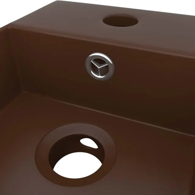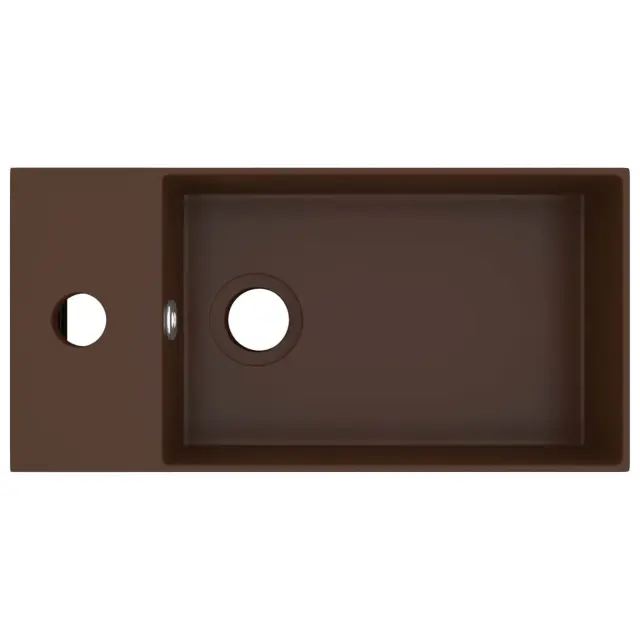 Kakovostna keramika z mat površino je preprosta za čiščenje. Umivalnik ima luknjo za odtekanje, skozi katero odteka voda, ko je poln. Ima tudi odprtino za namestitev pipe. Odtočna luknja ima premer 4,5 cm. Umivalnik lahko namestite nad omarico. Prosimo, upoštevajte: Pipa ni priložena.