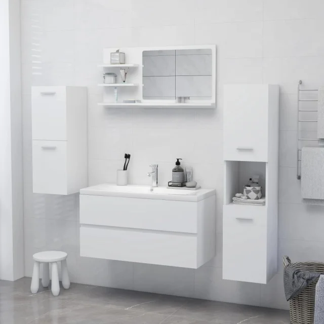 vidaXL Kopalniško ogledalo belo 90x10,5x45 cm iverna plošča