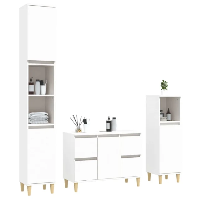 vidaXL Kopalniško pohištvo 3 kosi bele barve inženirski les