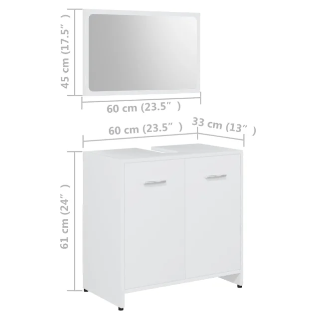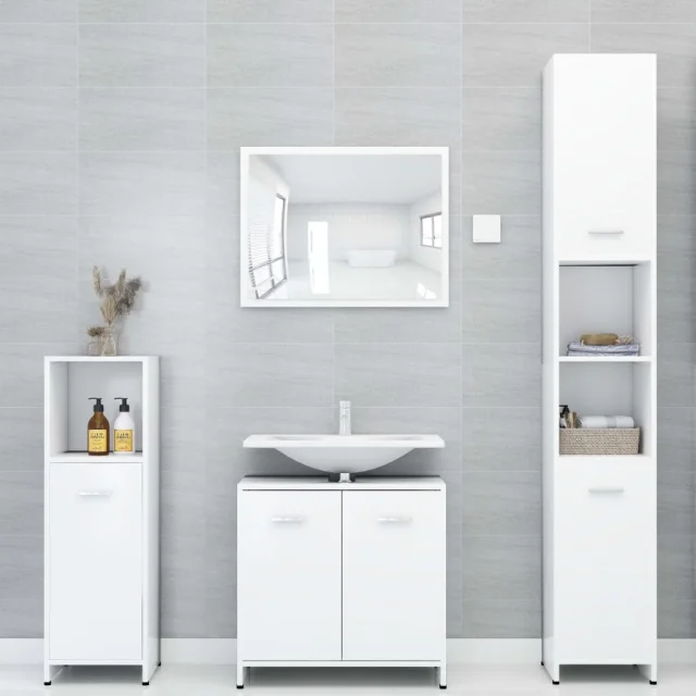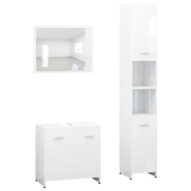 vidaXL Kopalniško pohištvo 3 kosi bele barve iverna plošča