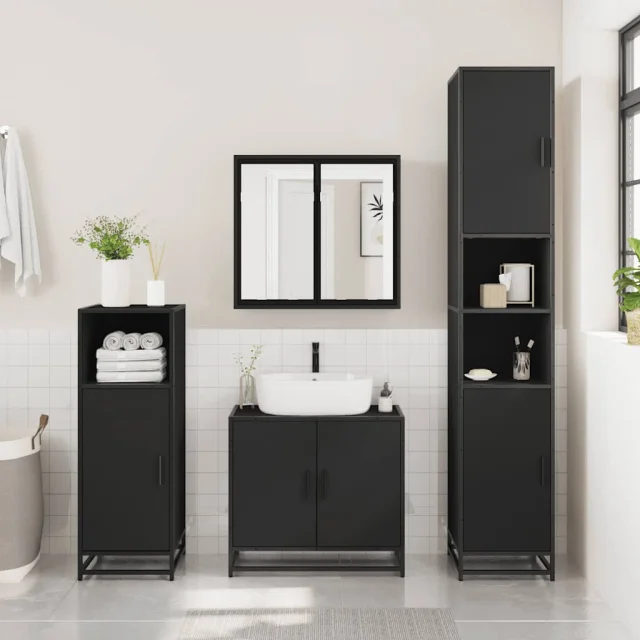 vidaXL Kopalniško pohištvo 3 kosi črne barve inženirski les