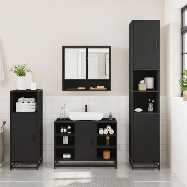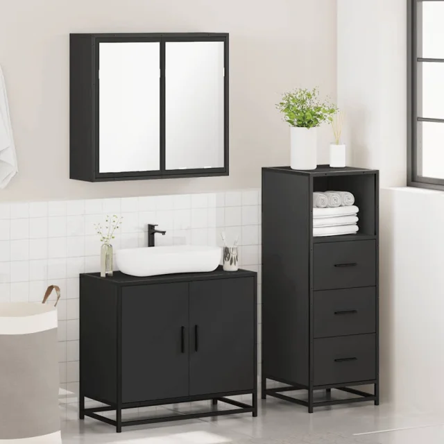 vidaXL Kopalniško pohištvo 3 kosi črne barve inženirski les