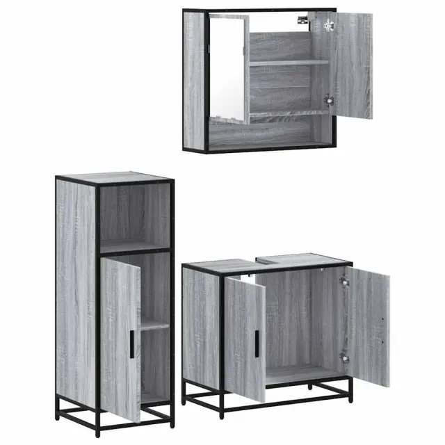 vidaXL Kopalniško pohištvo 3 kosi siva sonoma inženirski les