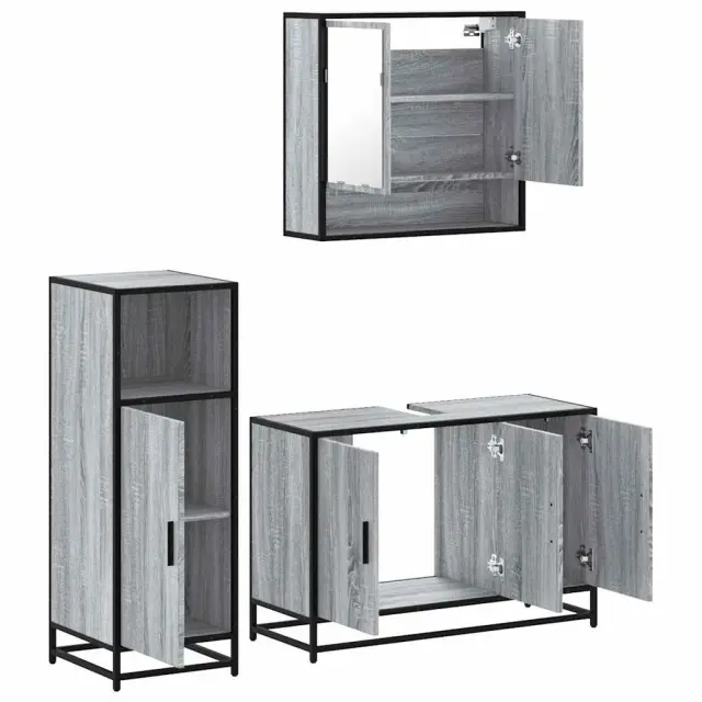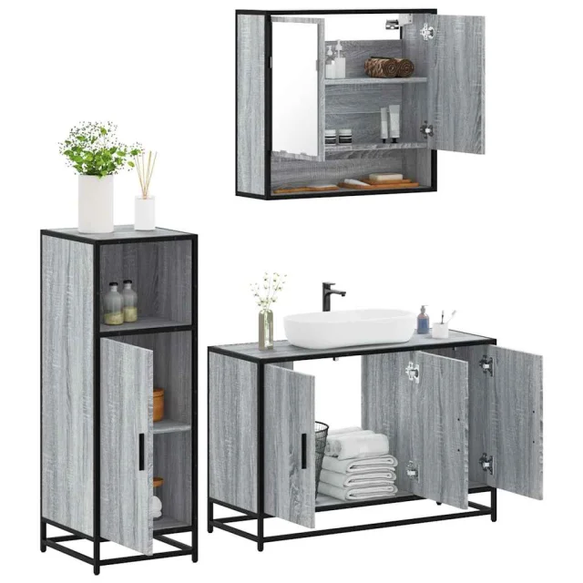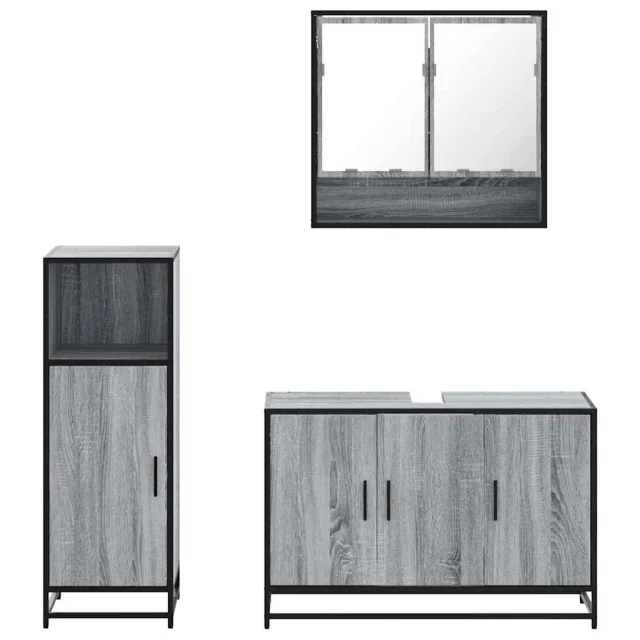 vidaXL Kopalniško pohištvo 3 kosi siva sonoma inženirski les